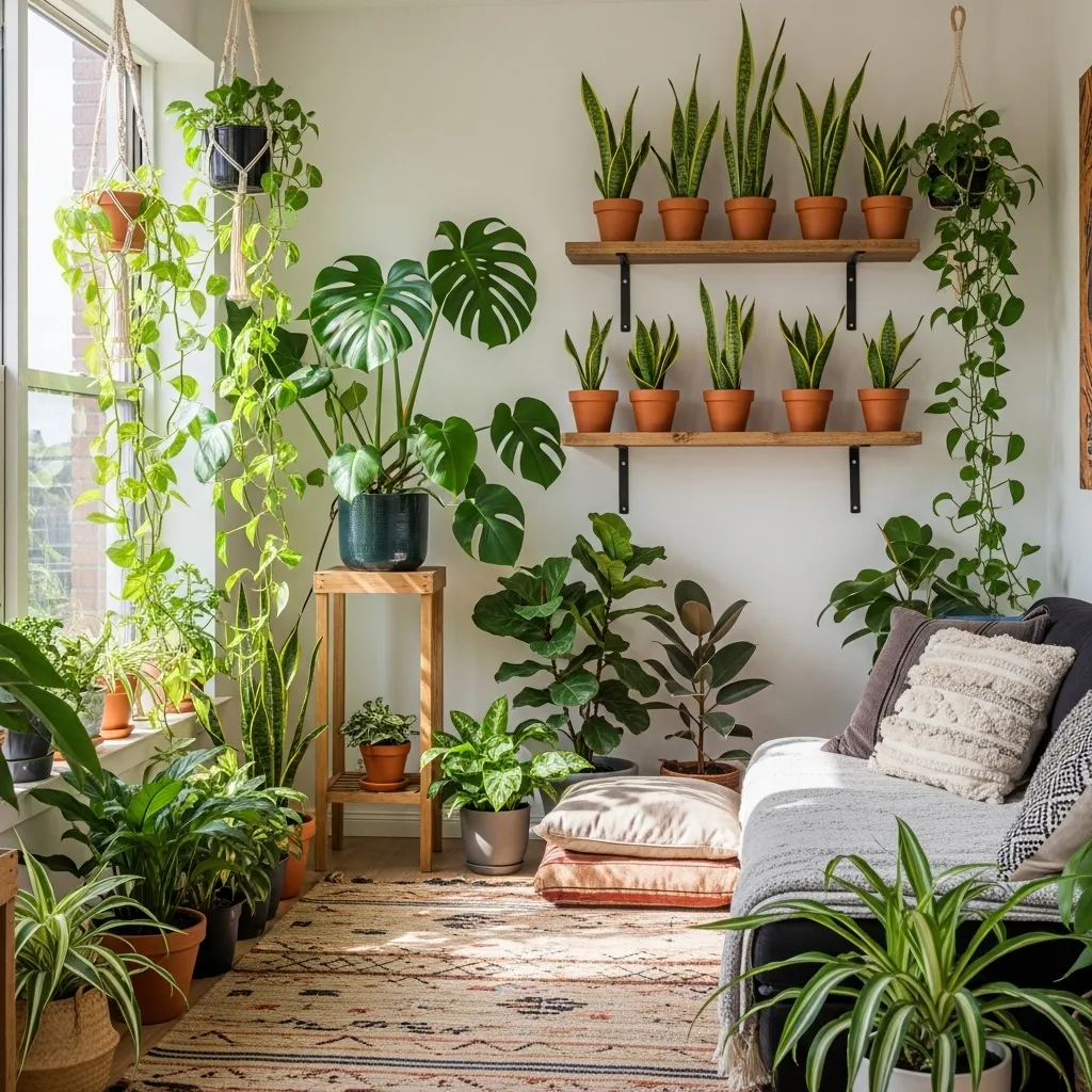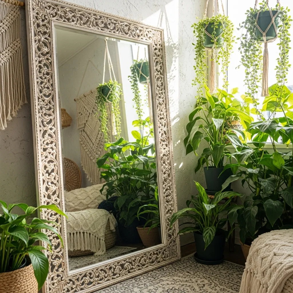 Plants are non-negotiable for my boho vibe. They bring life, color, and a beautiful, organic shape. To save space, I go vertical: hanging pothos from the ceiling, using wall-mounted shelves for succulents, or placing a tall snake plant in a corner. Mixing leaf sizes and types creates that lush, jungle-like feel we all love.