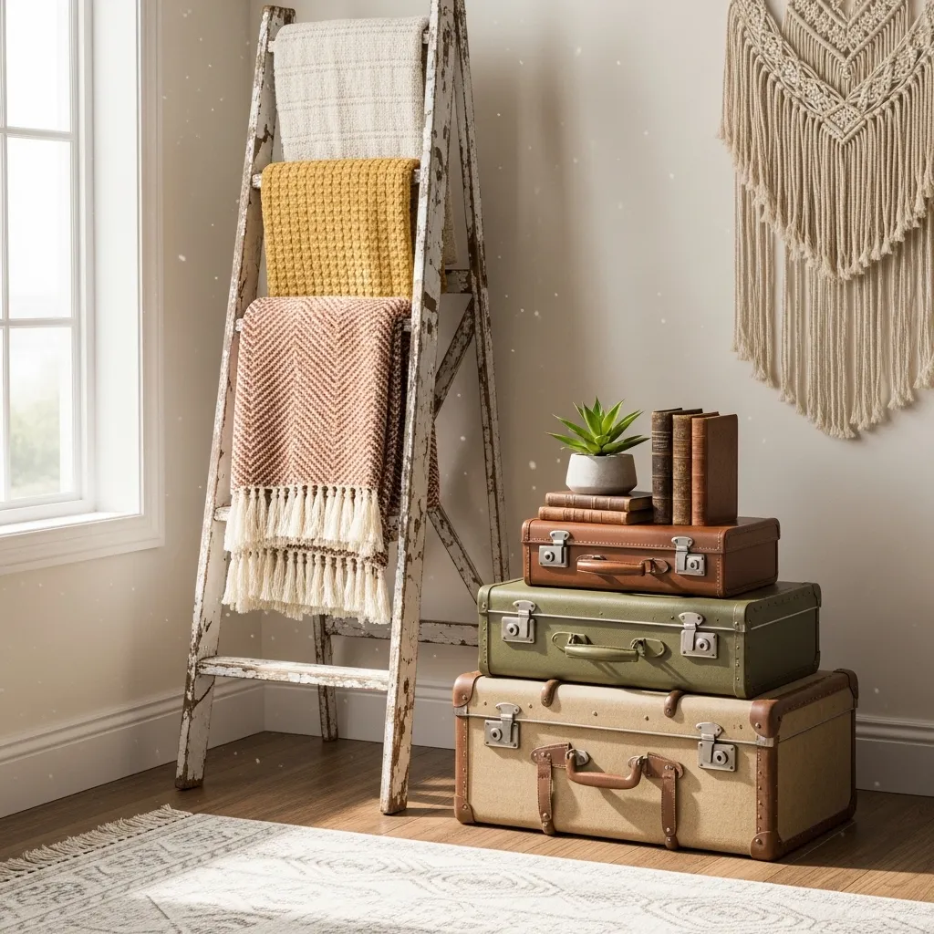 Scouring flea markets for one-of-a-kind pieces is half the fun. An old wooden ladder becomes a quirky blanket rack. A vintage suitcase stacks up as a unique side table. A weathered picture frame can hold a piece of fabric as art. These pieces add soul and history that new items just can’t replicate.