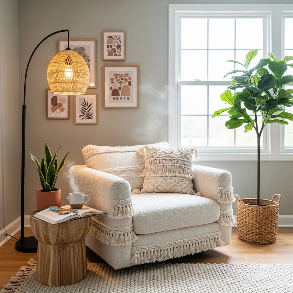 Carve out a tiny corner just for you. All you need is a comfy armchair or even a large floor pillow, a small side table for your tea, and good lighting—maybe a floor lamp with a textured shade. Drape a chunky knit blanket over the chair, and you have a perfect little escape within your home.