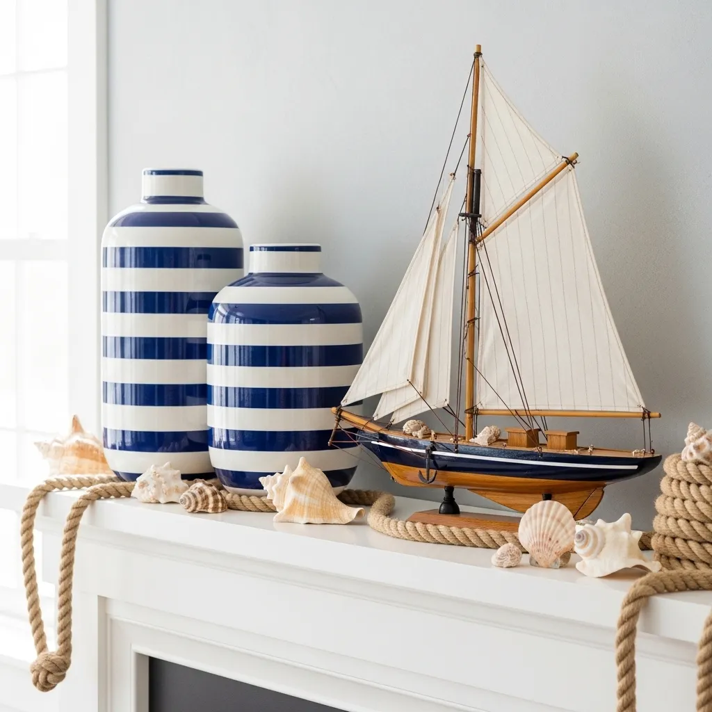 Keep the color palette soft: think whites, sandy beiges, and muted blues. A string of tiny seashells or a simple glass jar filled with sand and a candle completes this serene, ocean-inspired look.