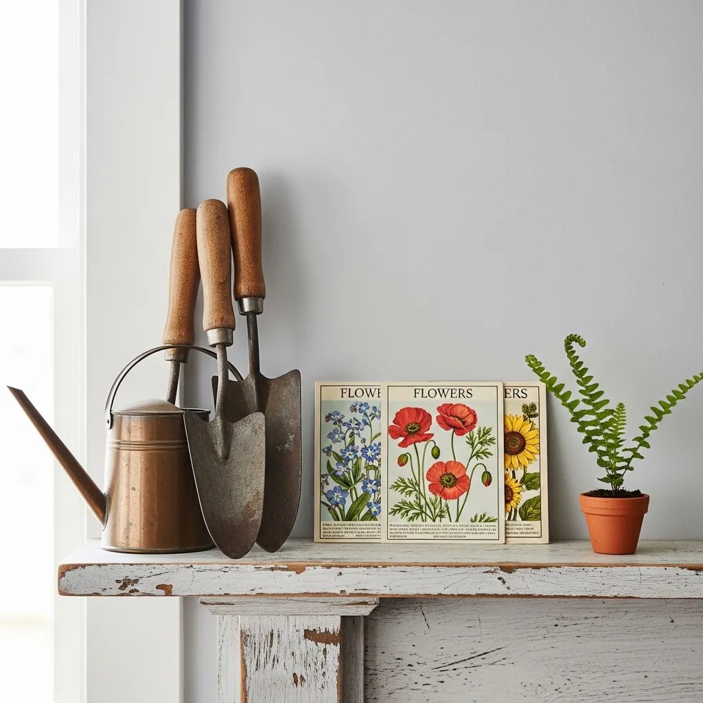 Celebrate the season of growth in a rustic way. I use small, vintage-style gardening tools as decor. Think a tiny watering can, a trowel, or seed packets tucked into a mason jar.