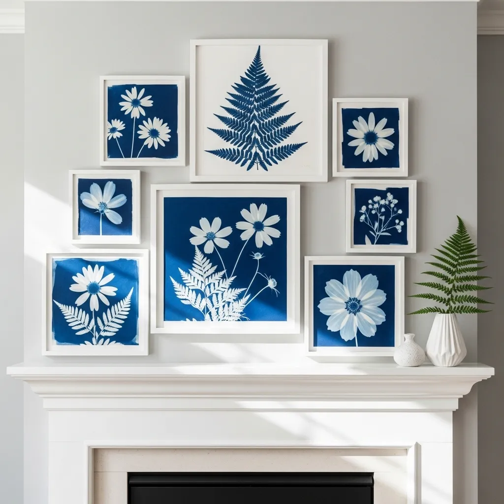 Swap out heavy framed art for lighter, summer-themed prints. I look for botanical illustrations, vintage beach posters, or cyanotype sun prints in thin, natural wood frames.