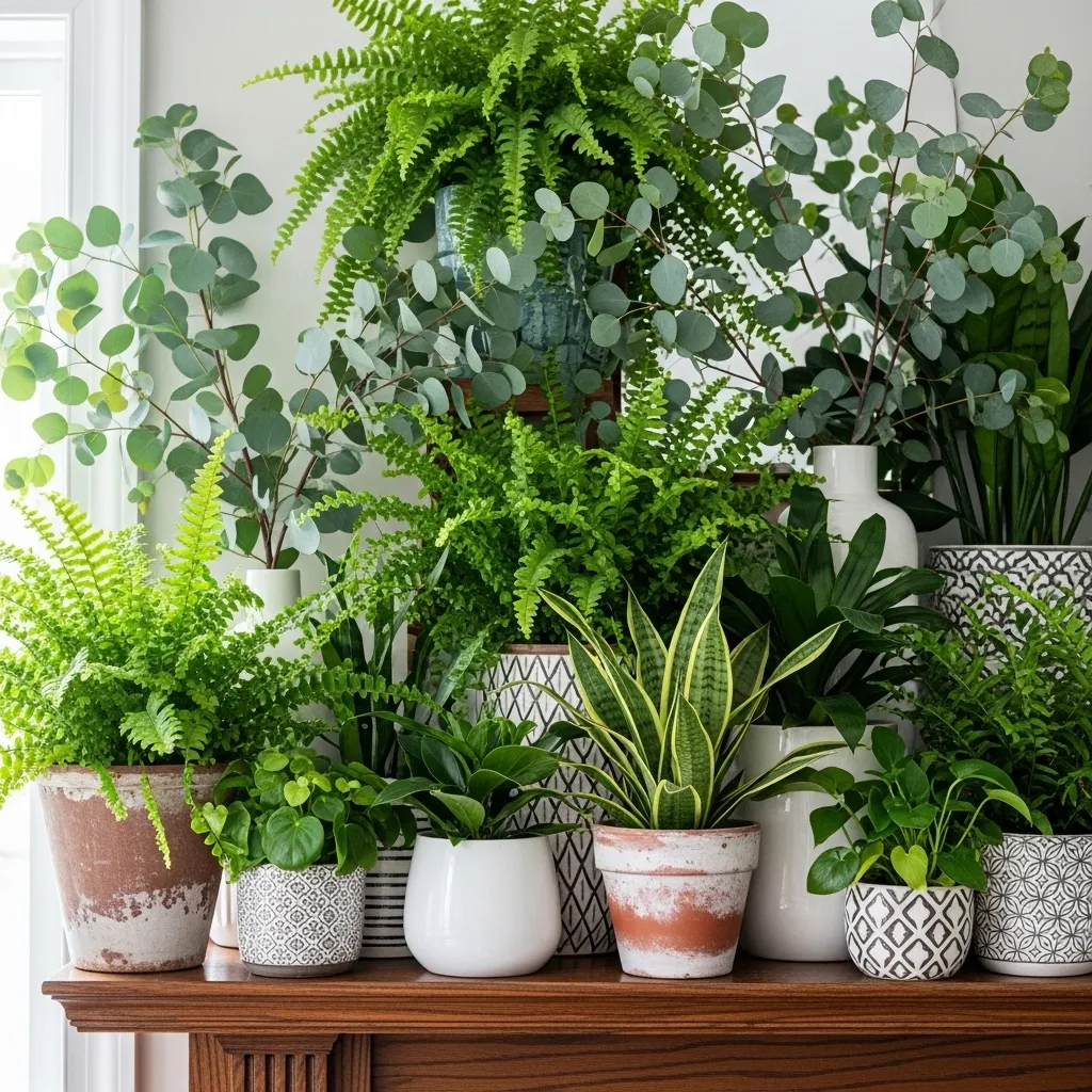Go monochromatic with various shades of green. I use different types of foliage—ferns, eucalyptus, olive branches—in a mix of vases. Even potted herbs like basil or mint work beautifully.